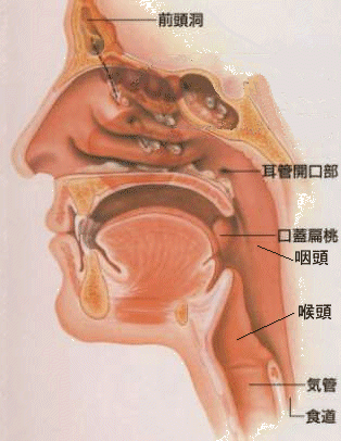 咽頭炎:炎症の主体が咽頭にあるため、鼻汁・咳などに比べて喉の痛み(咽頭痛)が強いのが特徴です。頭痛や発熱も見られます。このタイプの代表例として、コクサッキーA群ウイルスの飛沫感染により夏〜初秋に10歳以下の小児に多発するヘルパンギーナがあります。